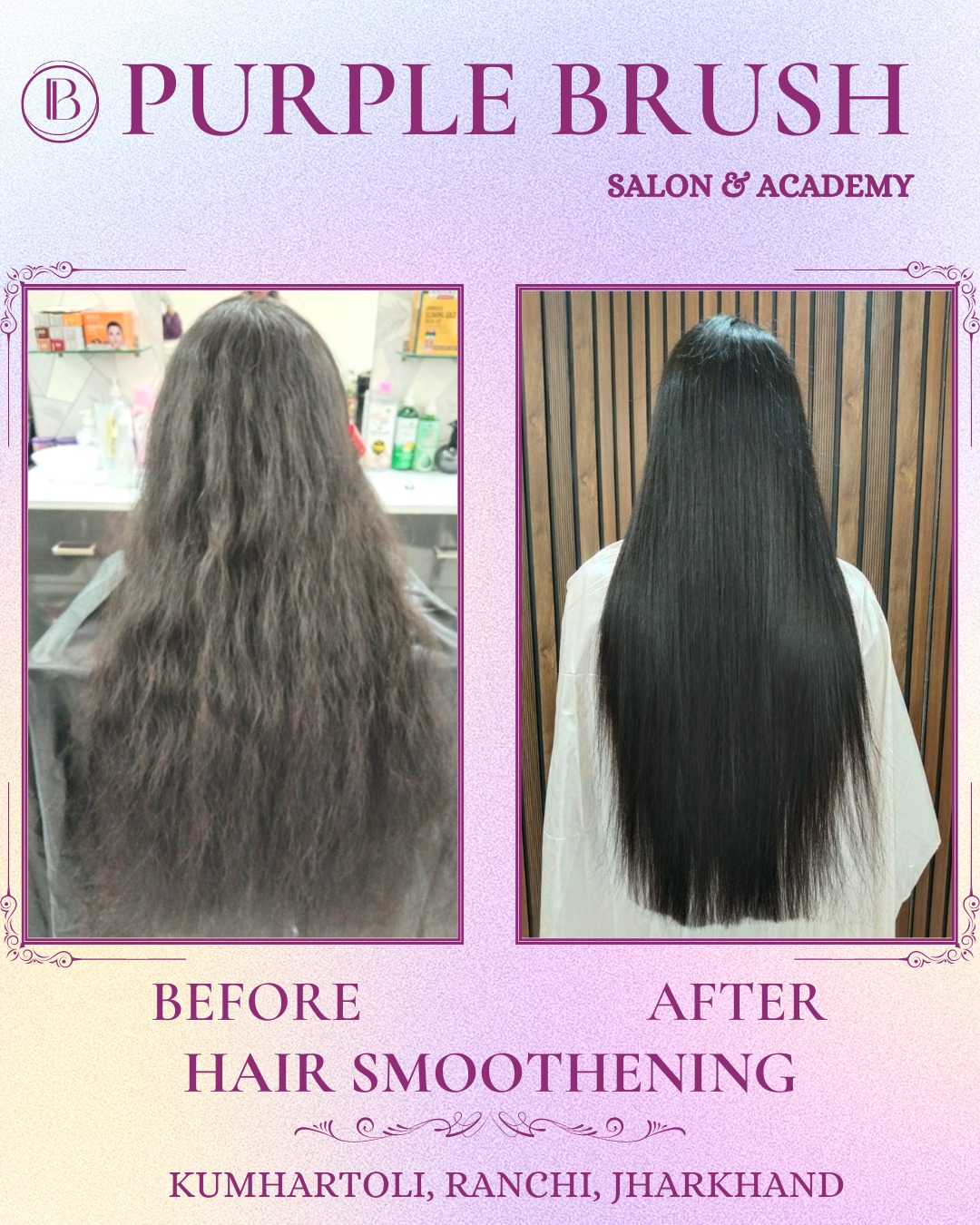PURPLE BRUSH SALOON is one of the most unique and stylish Saloon Present in Ranchi. This saloon is designed with the mindset of providing a variety of services for the purpose of improving health, beauty and relaxation through personal care treatments such as massages, facials and Spa. The greatest gift you can give yourself is a little bit of your own attention so, why not to spend a day at a place which Relax, Refresh, and Recharge yourself. PURPLE BRUSH SALON is designed with the interiors which gives you a soothing feel and has the professionals which makes you feel happy from inside. It works with the concept of ‘’ADDING CARE TO YOUR BEAUTY’’. PURPLE BRUSH SALON is operated with the team of professional make-up artists. It also has Specialize Aesthetic services which is very unique in Ranchi, Also they provide discount on every occasions. PURPLE BRUSH SALON is located in purulia road, Ranchi. PURPLE BRUSH SALON provides,